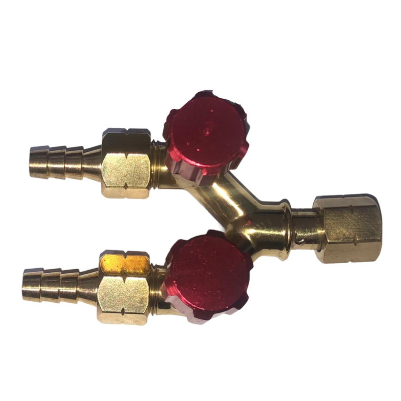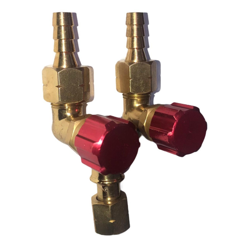 Saída Dupla de Acetileno da marca vorteck. é utilizada no Regulador de Acetileno para a distribuição de gases combustíveis através de mangueiras. Principalmente quando você quer montar um Conjunto de Corte e Solda ao mesmo tempo, utilizando somente um Regulador de Acetileno. Tendo um nível maior de segurança e economia. Você e sua empresa encontra as Saídas Duplas de Acetileno.