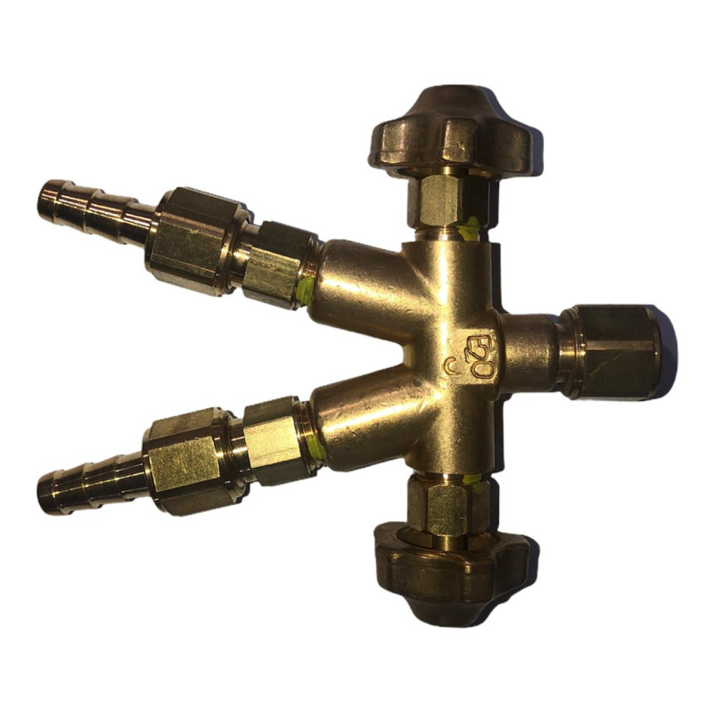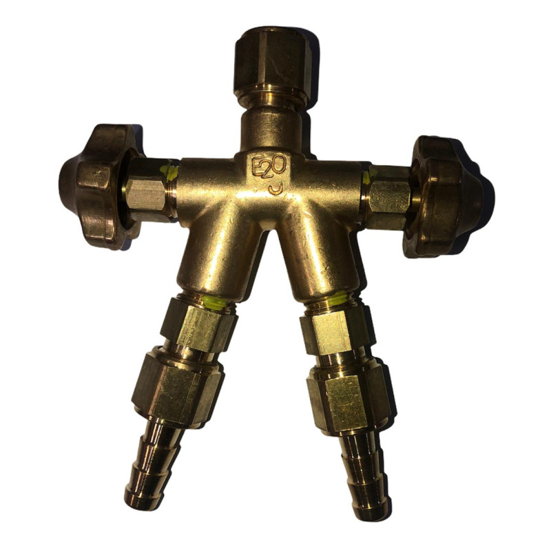 Saída Dupla de Oxigênio da marca fox. Construída em latão é utilizada no Regulador de Oxigênio para a distribuição de Oxigênio através de Mangueiras. Principalmente quando você quer montar um Conjunto de Corte e Solda ao mesmo tempo, utilizando somente um Regulador de Oxigênio. Também é útil para o processo Tig onde você precisa soldar e injetar gás ao mesmo tempo. Usando o mesmo Regulador de Argônio, tendo um nível maior de segurança e economia. Você e sua empresa encontra as Saídas Duplas de Oxigênio .